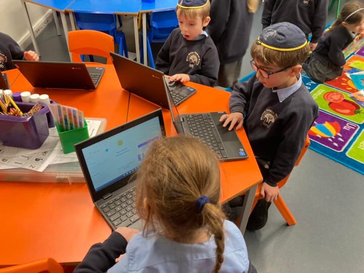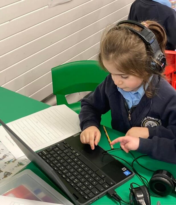 A look behind the scenes at a guided reading lesson and computing. In computing the children were learning how to use direction keys to complete a challenge, one group was reading with a grown up, others were using their phonics to spot graphemes within words, some children were using chrome books to listen to a story and spot rhyming words and the final group were reading for pleasure.
