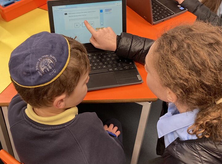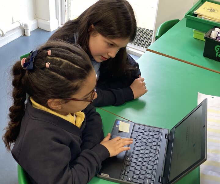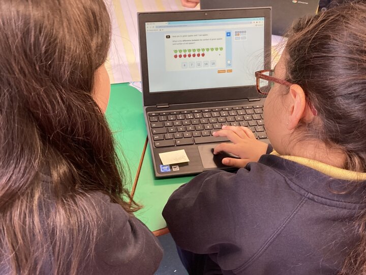 Our year 6 children joined this year 1 class for their Maths lesson today to lend a helping hand. Year 1 were using the Chromebooks to look at finding the difference and the older children were helping them hone their computer skills, namely their mouse control.