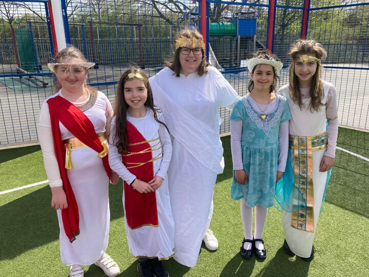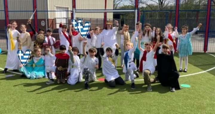 Year 5 have gone back in time to Ancient Greece to finish off their topic. All classes will hold a mini Olympic Games, create their own wreaths, design a mask and look at the Greek alphabet and write their own names using Greek letters. An enjoyable and educational day!