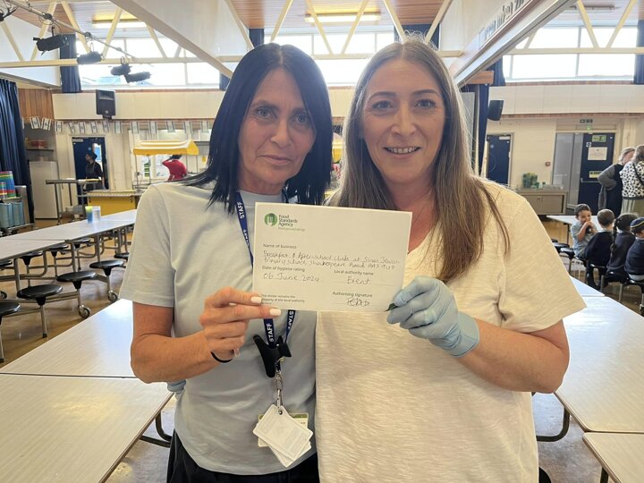 A huge well done to Santa and the kitchen team and our Breakfast and After School Club staff who were all awarded a 5 star Food Standard Hygiene rating after a spot check from Brent.