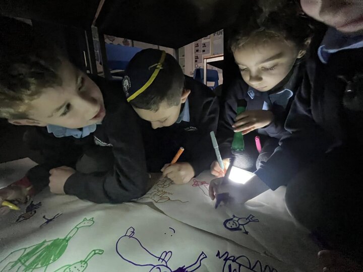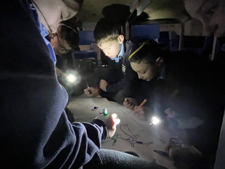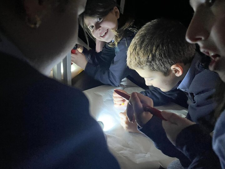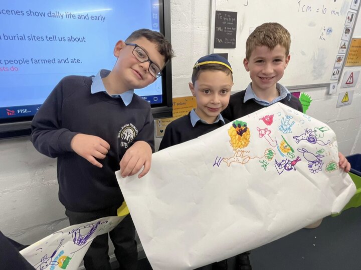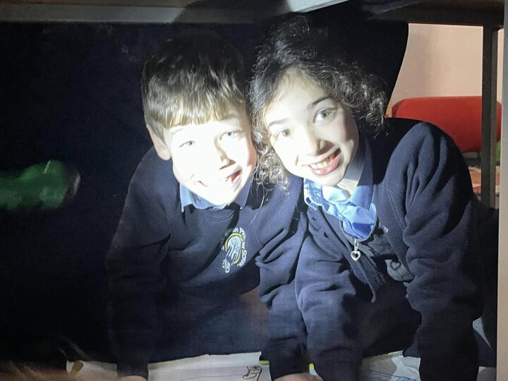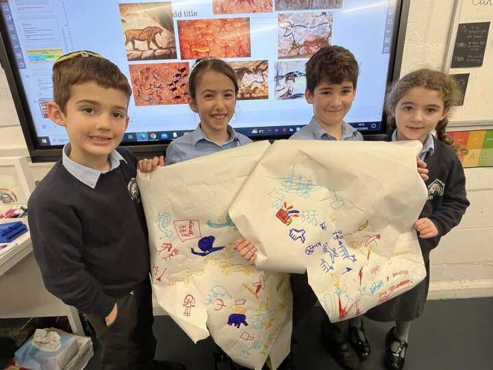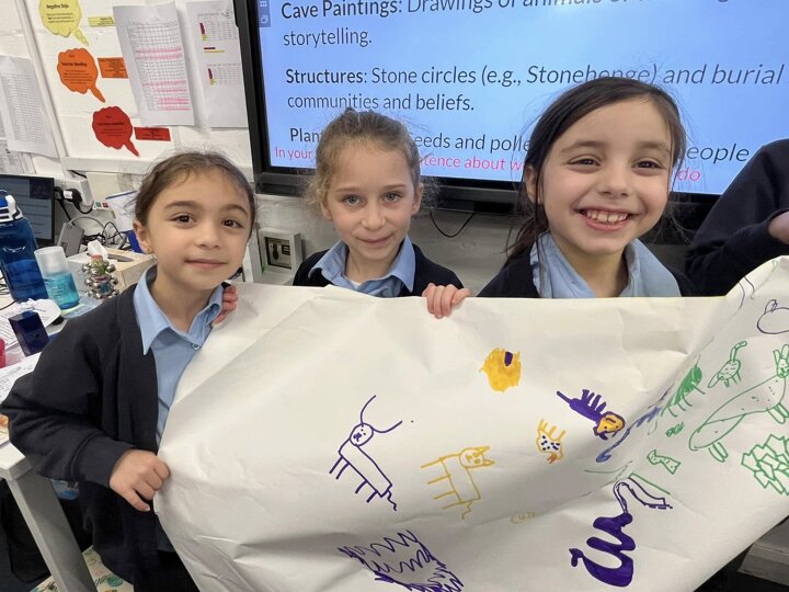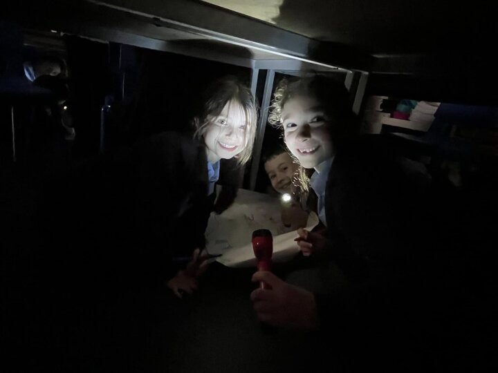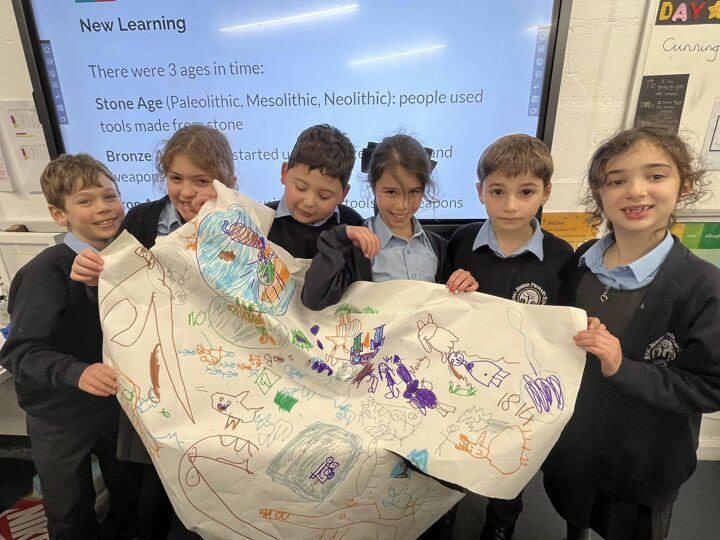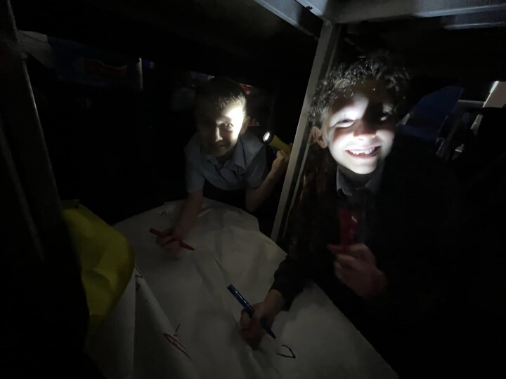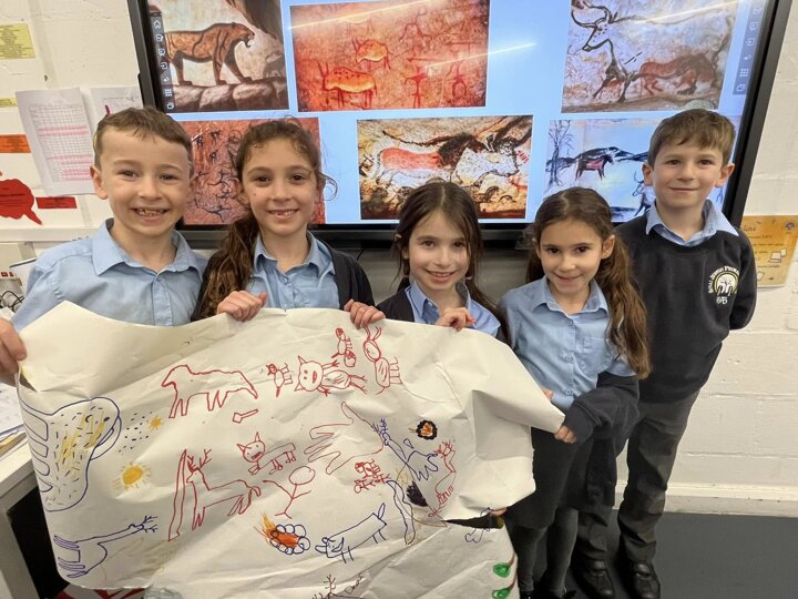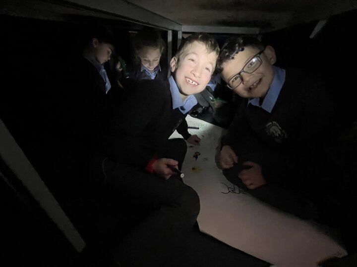 This is what memorable learning looks like. Our year 3 children have been learning about the Stone Age so we transformed the classroom into caves. Black material was draped over the tables, the lights were turned off and the children given torches to mimic fire light. They crawled into their caves and worked in groups to produce their very own cave drawings. A very creative and fun way of learning for the children.