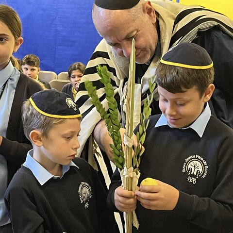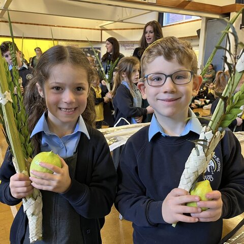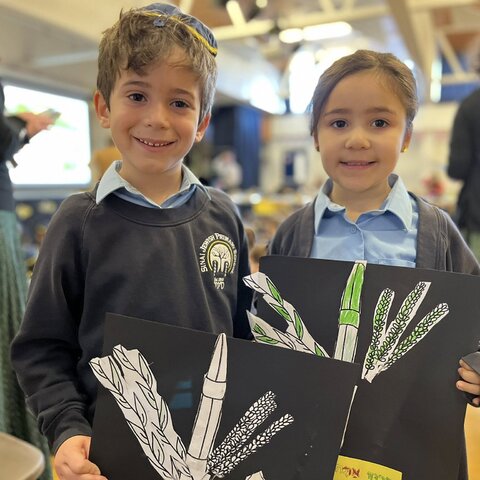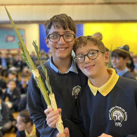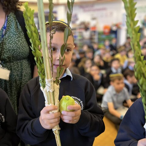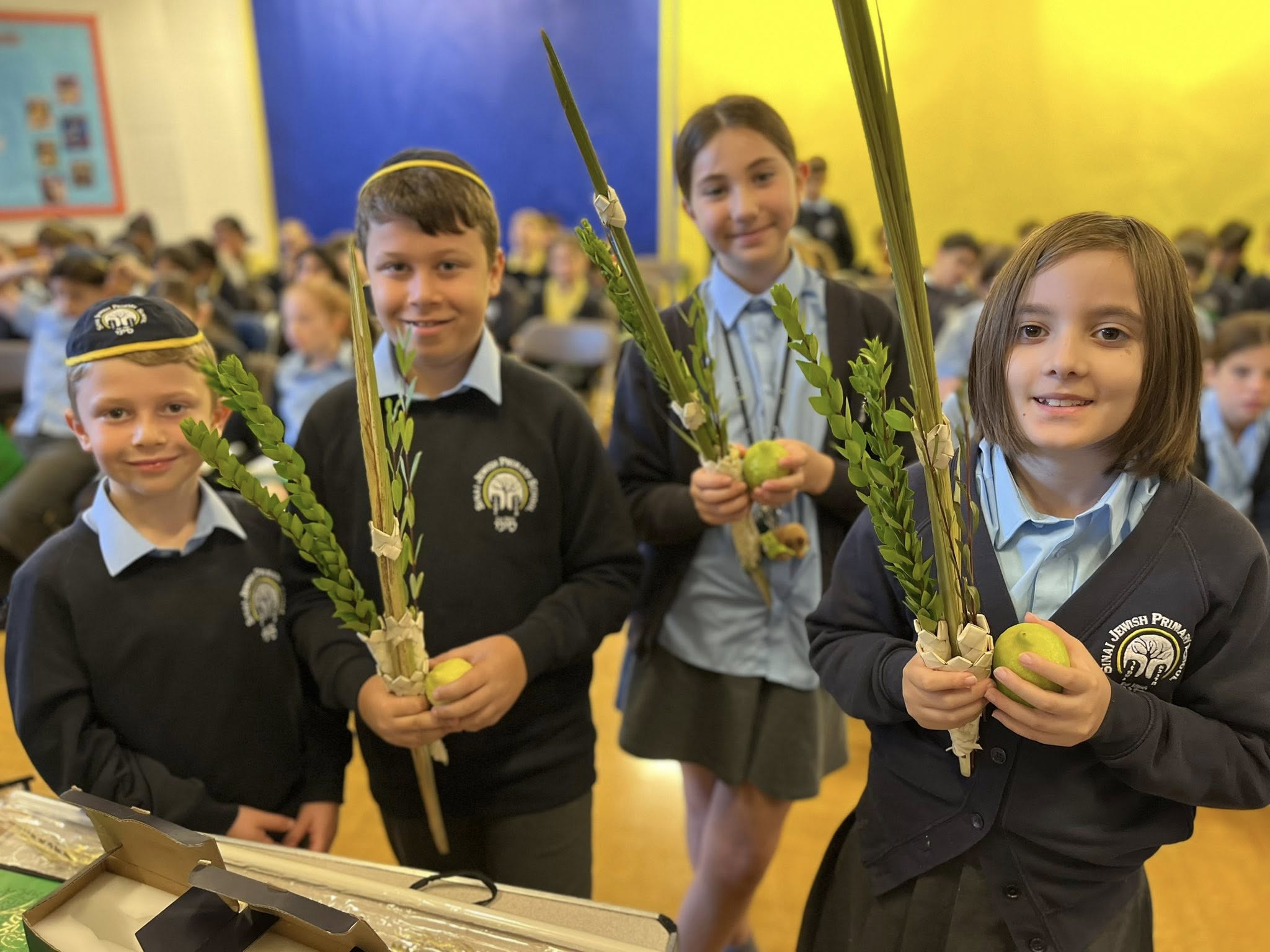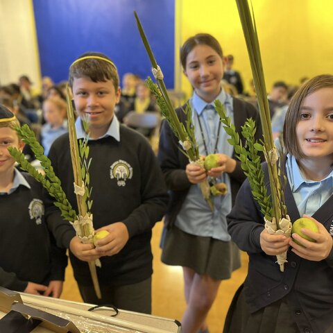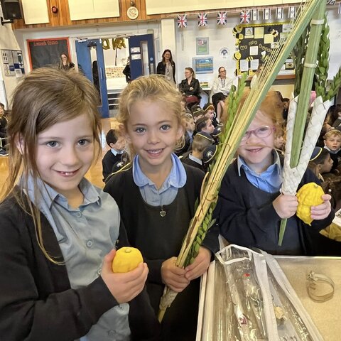 Happy Succot. The children enjoyed a special Succot assembly this morning. Succot in school is always special as every child will visit the school succah for a drink and biscuit and have the opportunity to shake the lulav and etrog.