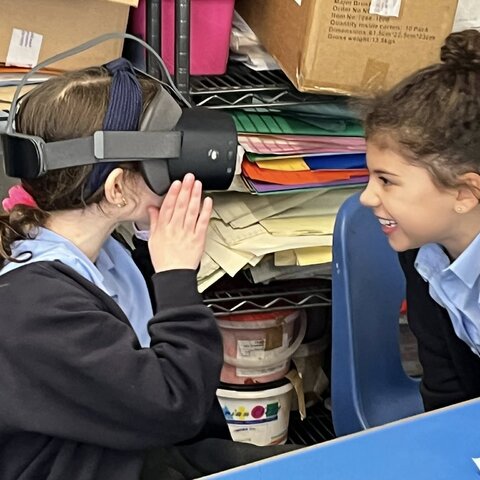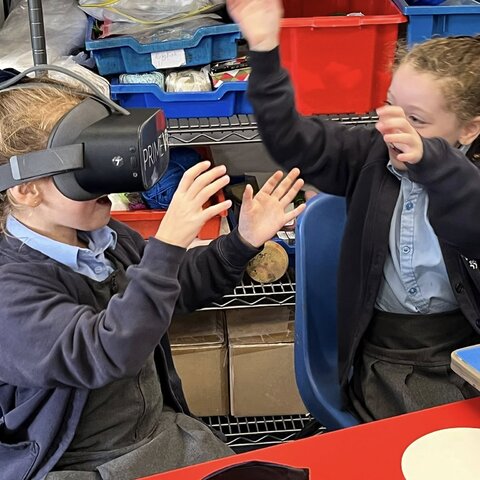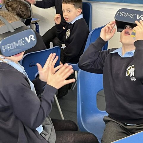 Our year 3 children had an amazing history lesson today. Using specialist virtual reality headsets they were transported to the Stone Age. They discovered how our earliest ancestors developed from a hunter/gatherer lifestyle during the Palaeolithic period to domesticated farming in the Neolithic era. An amazing experience for the children.