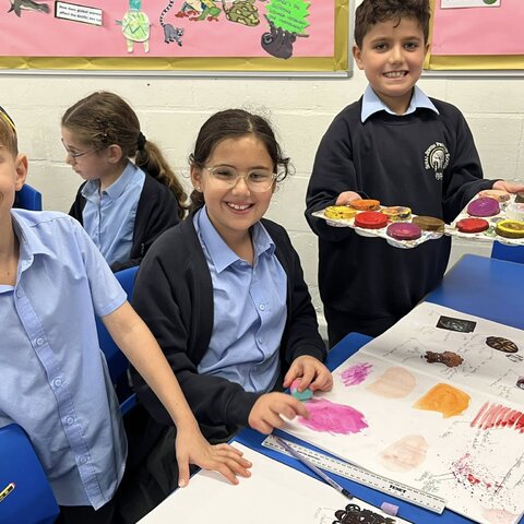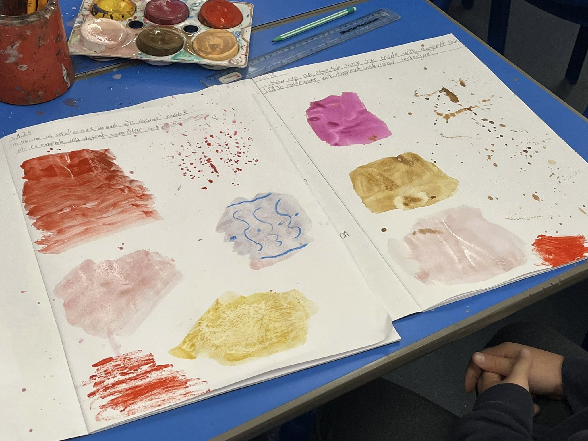 Our year 4 children are experimenting with different watercolour techniques in their Art lessons. They will be assessing a range of techniques and use the best one to decorate a Mayan mask at the end of the learning unit.