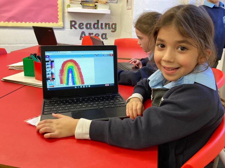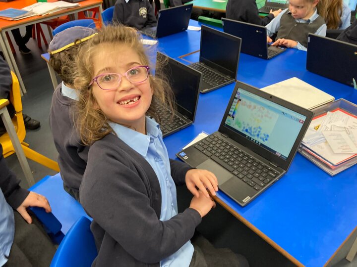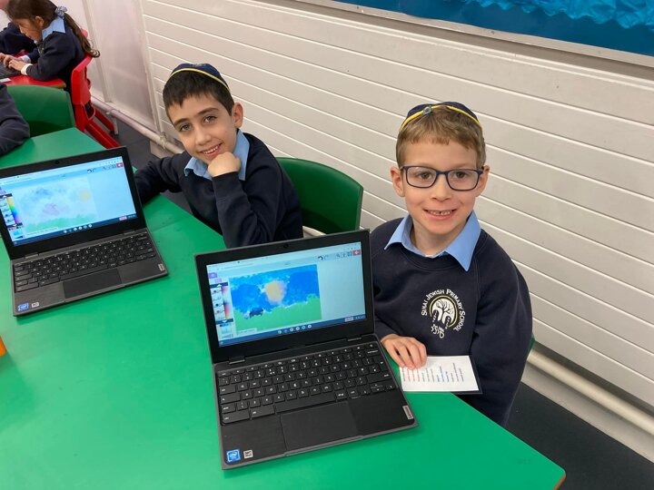 Year 2 were creating their own impressionist-style paintings in computing today. When they finished they added their signature and a title before saving to their folder.