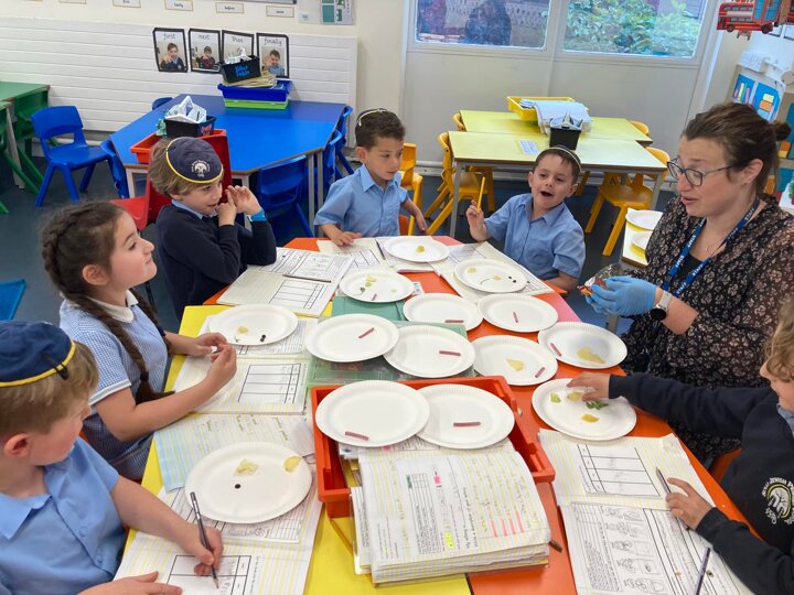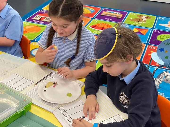 Year 1 are doing Science investigations this afternoon. As part of their topic, ‘Animals and Humans’ they are looking at the different senses. Today they looked at sight and were blindfolded and working in pairs, sound using musical instruments and taste with a special taste test. The children sampled 8 different types of food. Some were better received than others!