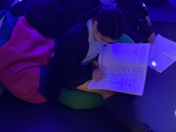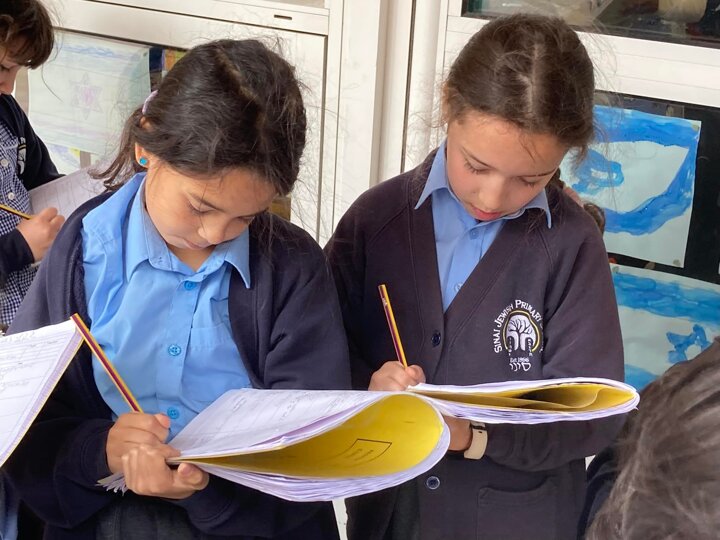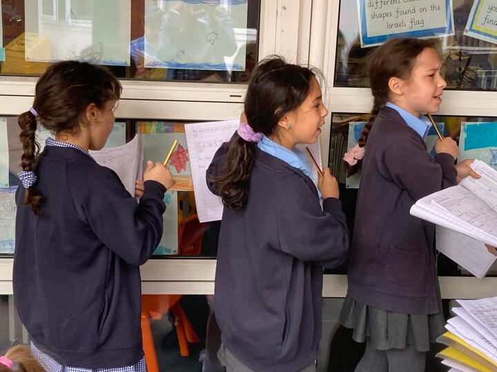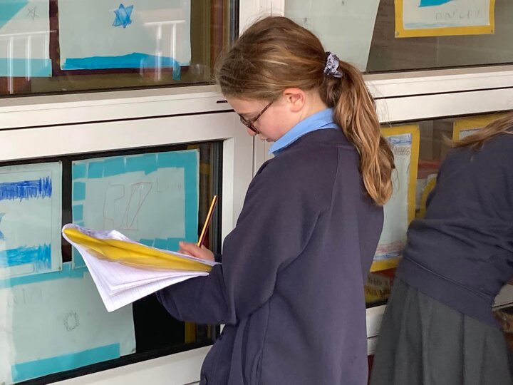 Year 4 enjoyed an English learning walk around the school to develop their senses and improve their writing. They were noting down what they could see and hear to encourage abstract thinking.