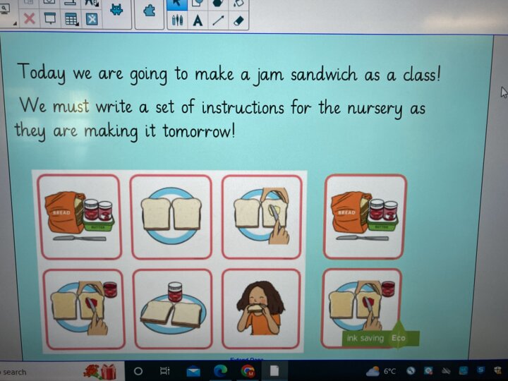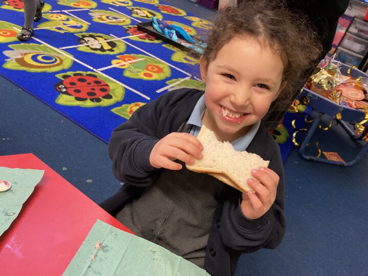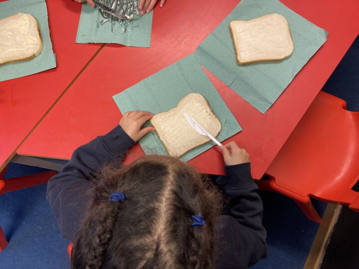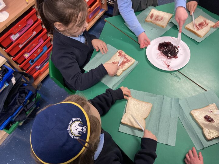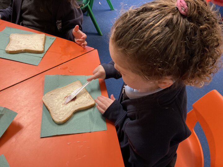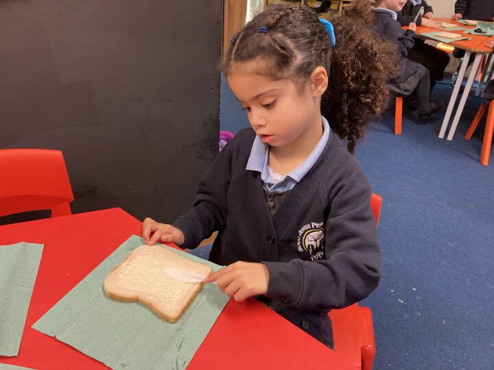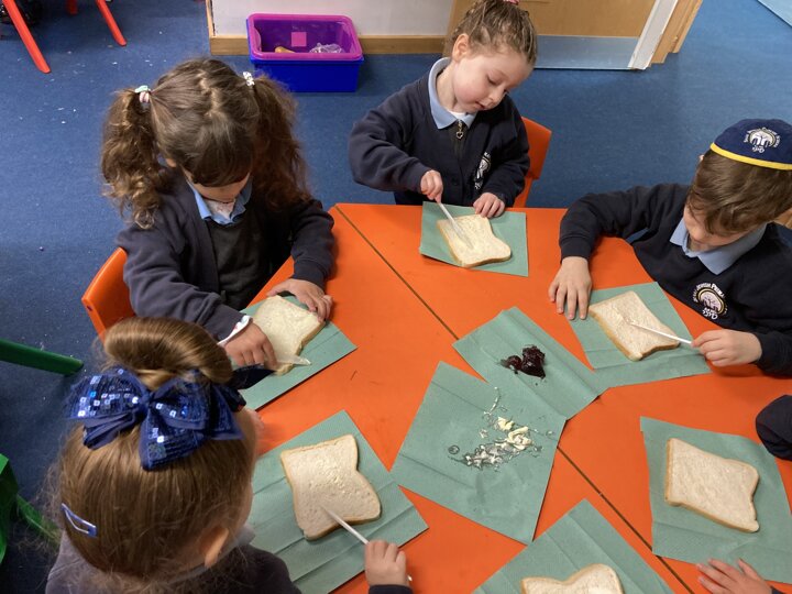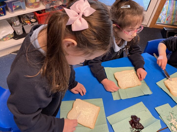 There was lots of intent listening in Reception today as the children had to follow simple instructions and make a jam sandwich. They had to do careful listening to ensure they followed the steps in order. They will also be writing their own set of instructions so our Nursery children can have a turn at making jam sandwiches tomorrow. As a yummy treat the children could enjoy the sandwich they had made.