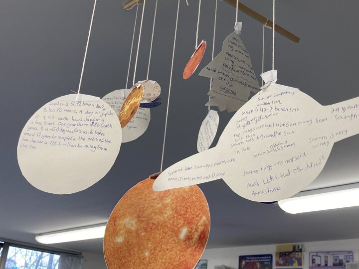 Year 5 have been learning about the solar system and created fact files and made them into these cool hanging planet mobiles. They worked scientifically by making the models, collecting and analysing data.