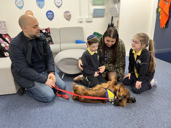 There’s a new dog in town… say hello to Ralph! Ralph is a very lovely ‘Pets as Therapy’ dog. He is specially trained to visit hospitals and care homes but he has agreed (with his kind owner) to visit Sinai to boost the children’s confidence and he will even listen to them read. He enjoyed plenty of tummy rubs and seemed very at home in our school.