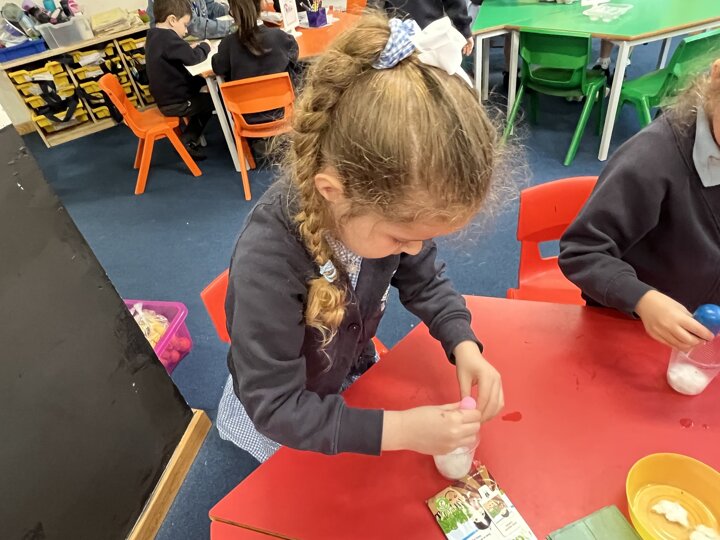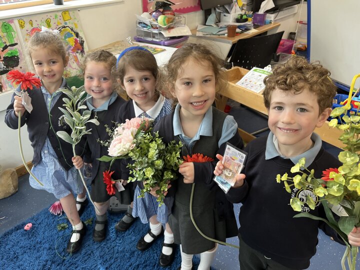 Our Reception children are looking at ‘Growing’ and have had a busy morning building tall structures, measuring their feet using blocks, playing in our Garden Centre home corner, planting cress seeds and watering them and writing about a character from the book Jack and the Beanstalk. Lots to keep them busy and happily learning.