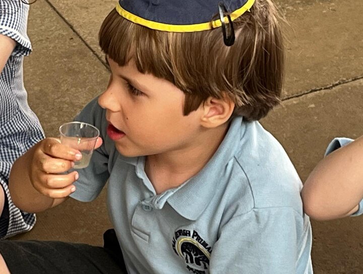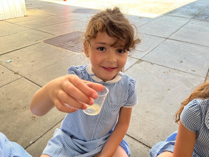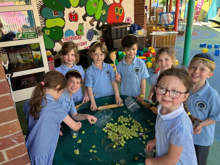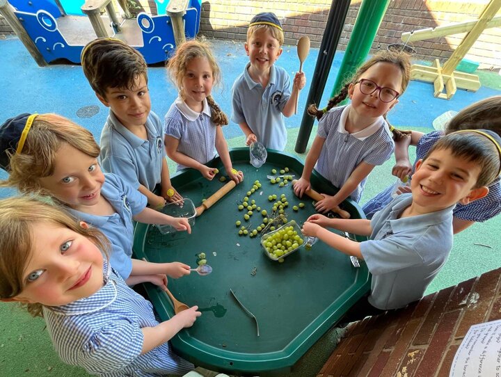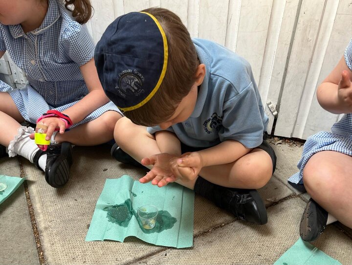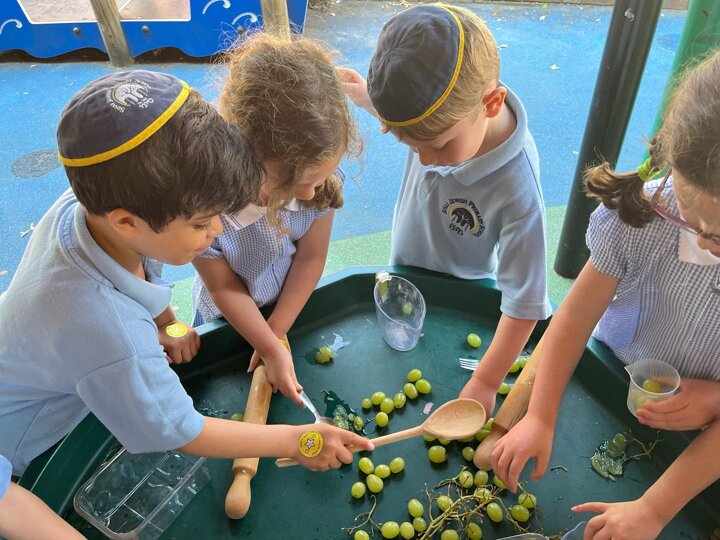 As part of their Shabbat topic the Reception children are learning about kiddush this week. They have been making their own grape juice (yayin)