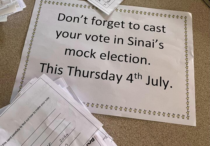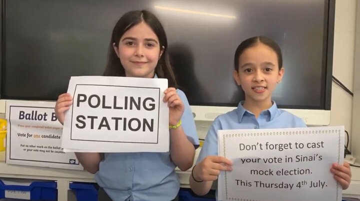 The Sinai Mock Election is in full swing. Our School Council made short campaign videos to share with the classes in advance and all the children were given a polling card and visited our polling station under the KS2 Shelter. The children marked their secret vote with an X and posted it in the sealed ballot box. #GeneralElection2024 #BritishValues