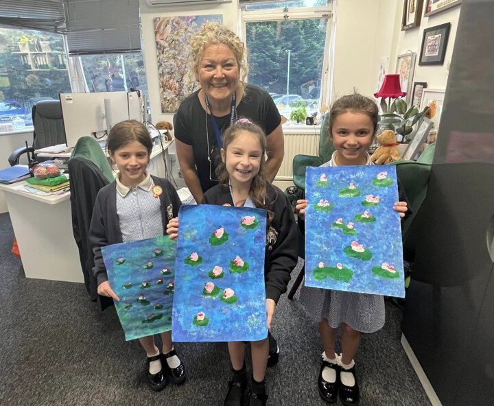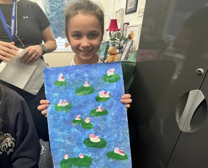 Year 3 have been looking at Impressionism in Art. They have been recreating the work of Claude Monet by painting these stunning water lily paintings. Look how they have used sponges to paint and create movement in the water. The glitter makes it glisten too. Mrs Lipshaw was very impressed and handed these children a special achievement sticker.