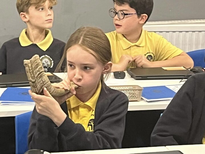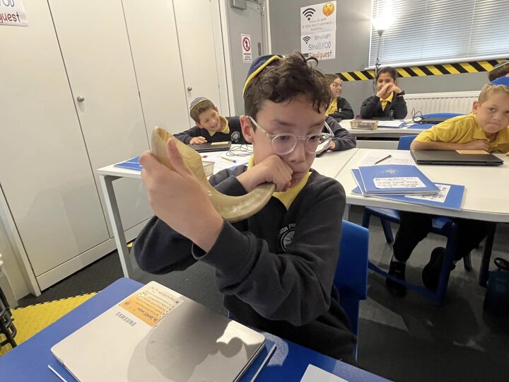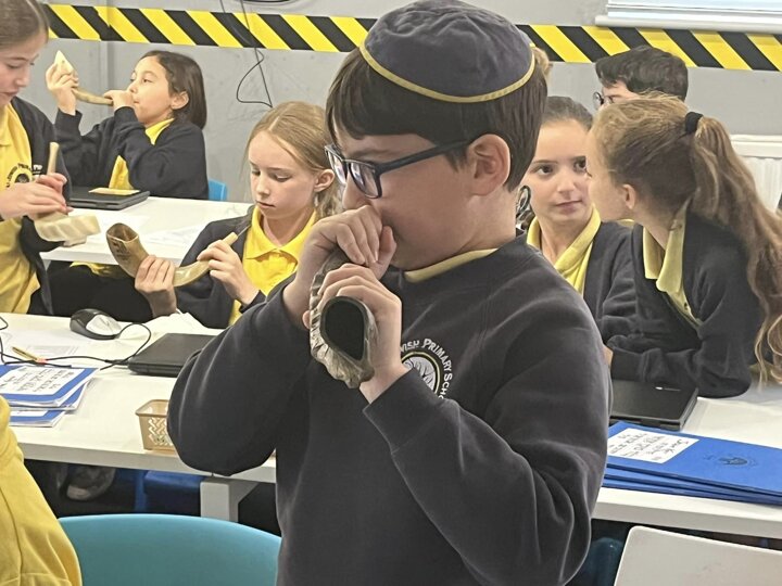 Mr Drucker is getting our year 5 children ready for Rosh Hashana by learning all about the shofar. The children then had the opportunity to blow a shofar - for many this the first time they have had the chance to do this.
