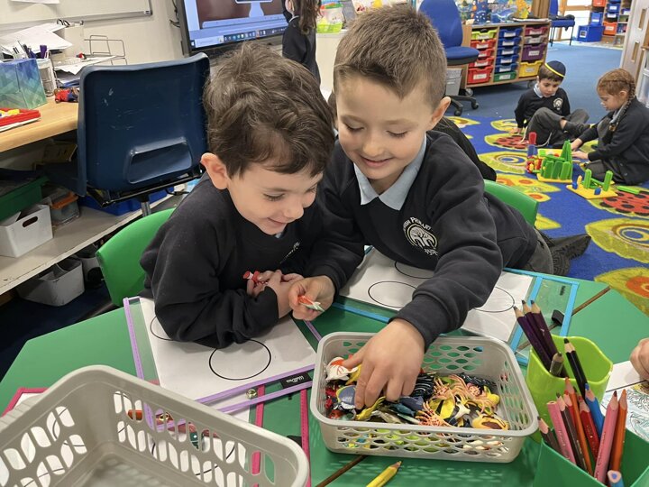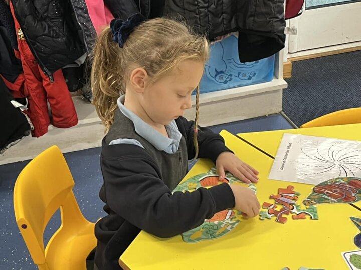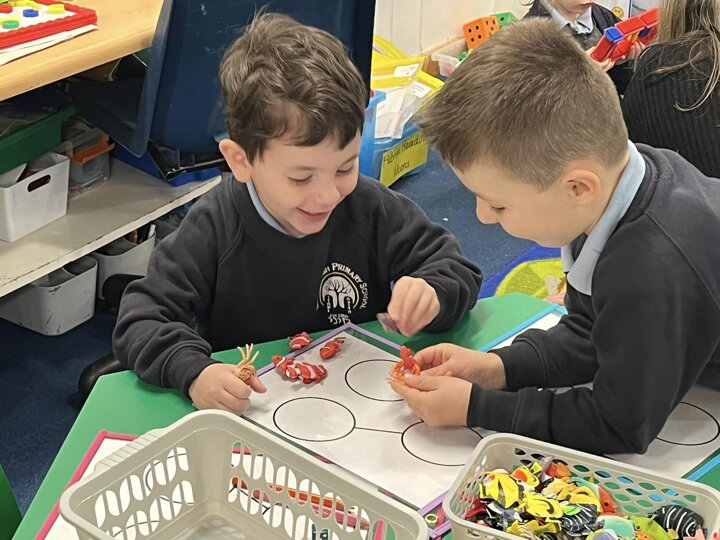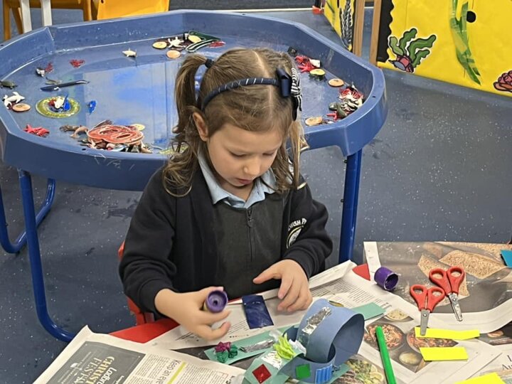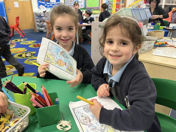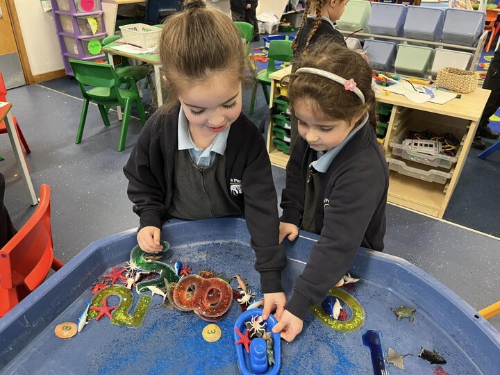 Our Reception children are fully immersed in their Under the Sea topic. They are reading ‘The last seaweed pie’ and the table top activities are all on theme. The children are counting sea creatures, making seaweed, doing sea puzzles and having plenty of opportunities for number and letter writing.