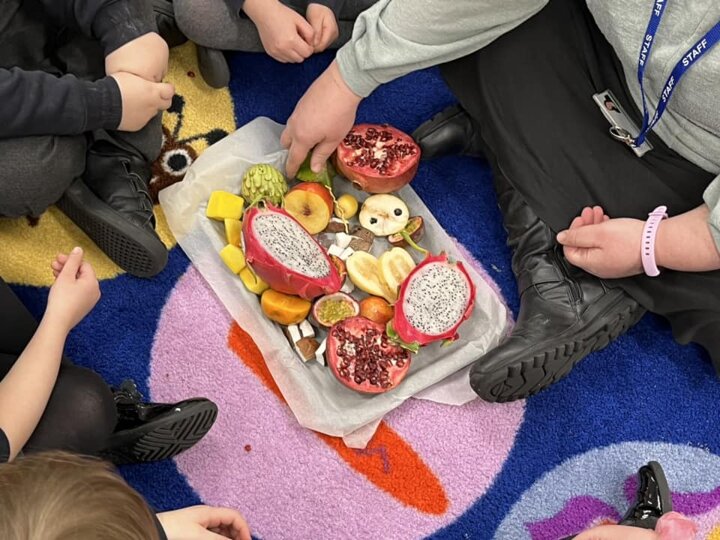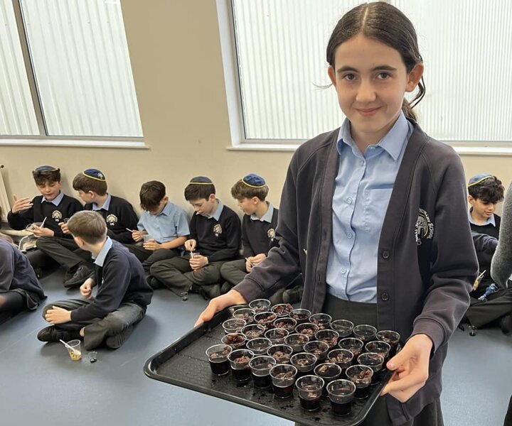 Today has been a very fruitful day… we’ve been celebrating Tu Bishvat. There have been lots of fruit and tree related activities across the school including fruit kebab making, blossom tree painting, 3D flower making, planting parsley to use during Pesach and even a brachot party to taste as many fruits as possible and recite all the accompanying brachot. Lunch today also had a fruity dessert.