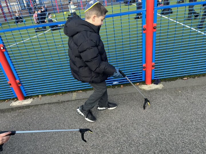 Two members of our Eco Council were hard at work this lunchtime to keep our school environment clean and tidy. They were doing an excellent and very thorough job. Well done boys!