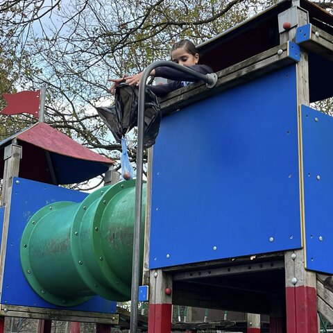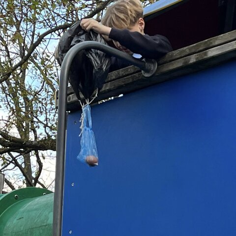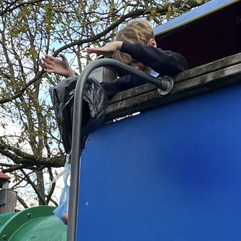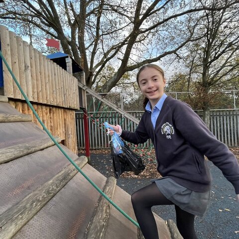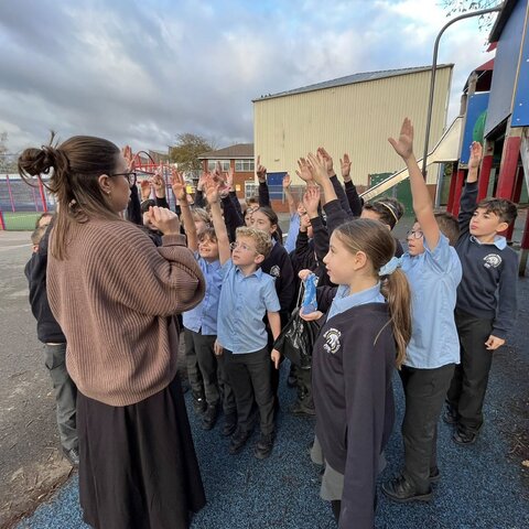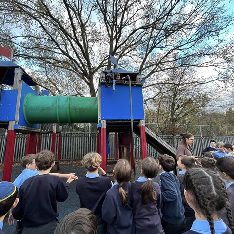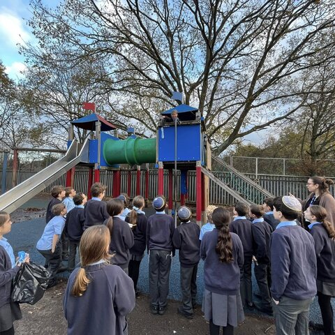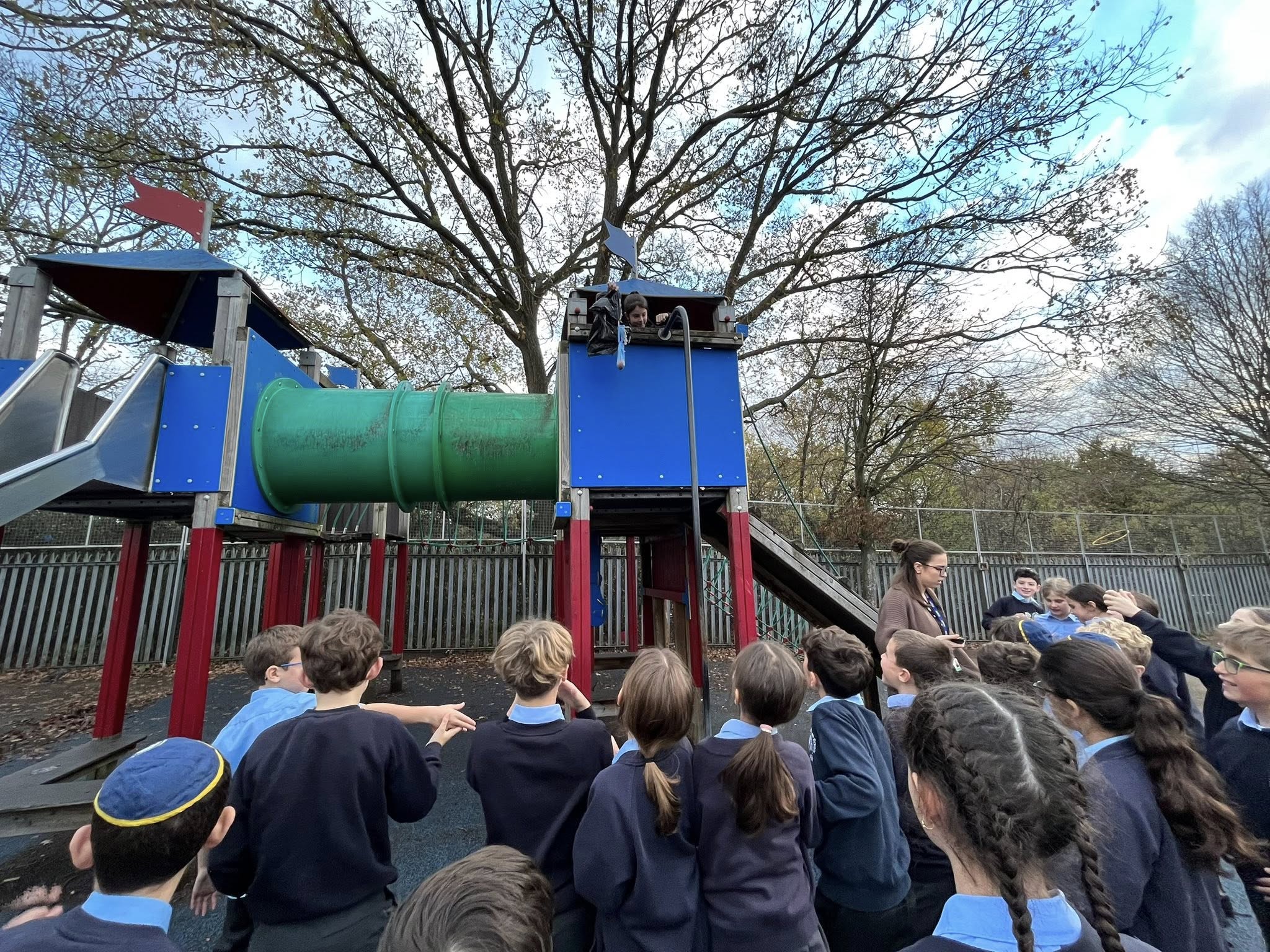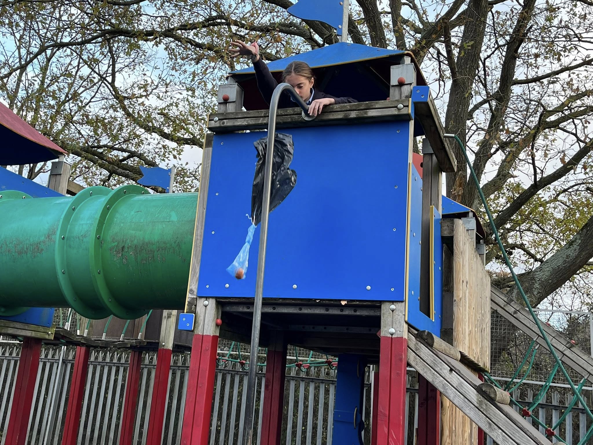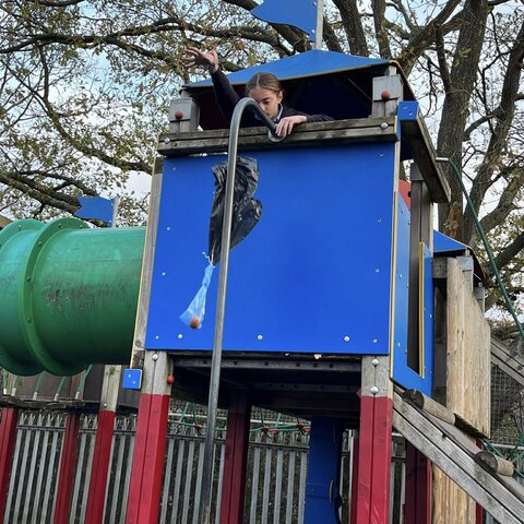Our year 5 children took their learning outside to conduct an experiment about Forces. They made different size parachutes for their eggs to see if they could successfully launch an egg from the top of the play equipment and have it land intact.